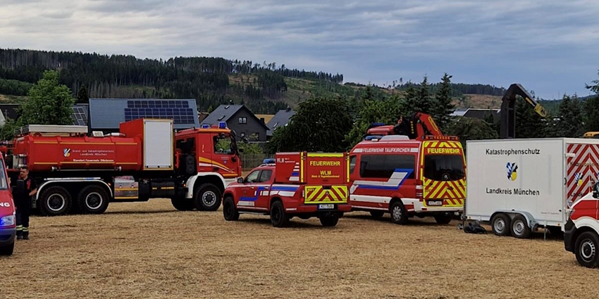 Am Sonntag, 6. Juli 2025, ist ein Einsatzkontingent aus dem Landkreis München in Richtung Saalfelder Höhe in Thüringen aufgebrochen. Auf Anforderung des Landes Thüringen haben die Einsatzkräfte bei der Bekämpfung des Waldbrandes bei Gösselsdorf unterstützt. Dort waren am Mittwoch, 2. Juli, mehr als 250 Hektar Waldfläche in Brand geraten. Der Landkreis Saalfeld-Rudolstadt hatte daraufhin den Katastrophenfall festgestellt. Bereits im Laufe des Montags konnten die Einsatzkräfte wieder in ihre Heimatorte zurückkehren.