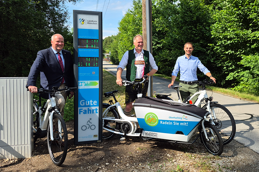 Erste Fahrradzählstation im Landkreis München offiziell in Betrieb genommen
